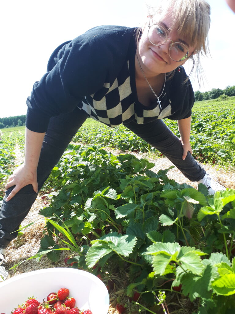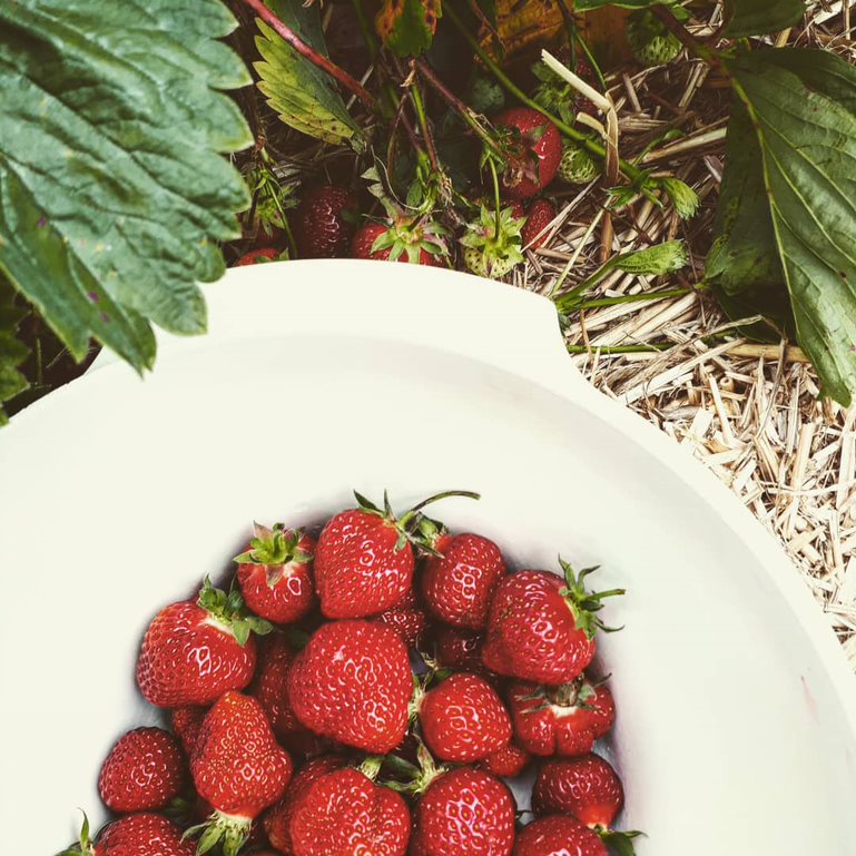 Og som det, der satte mine tanker i gang; så er det jordbær og ærtepluk. Hos os er det en tilbagevendende begivenhed, hvor hele familien står foroverbøjet i jordbærbedene med munden fuld af de søde frugter. Det er lyden af “poppet”, når du åbner et ærtebælg og knaser de friske ærter mellem tænderne. Vi har altid sagt, at det var en god ting, at familien ikke skulle vejes, ligesom kurve og skåle. For nok plukker vi en masse, men spiser også ligeså meget, når vi står ude i bedene.
